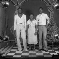 452. EAP054/1/30/452 Reference (shelfmark): EAP054/1/30/452 Title: Recreational photograph [c 1981] Scope & Content: Woman standing between 2 men standing Format of original: 59mm x 59mm plastic negative Collection Area: Endangered Archives Programme Languages: Not applicable Date Range: c 1981 Extent: 1 TIFF image