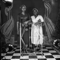 465. EAP054/1/30/465 Reference (shelfmark): EAP054/1/30/465 Title: Recreational photograph [c 1981] Scope & Content: 2 women standing behind iron grillwork Format of original: 59mm x 59mm plastic negative Collection Area: Endangered Archives Programme Languages: Not applicable Date Range: c 1981 Extent: 1 TIFF image