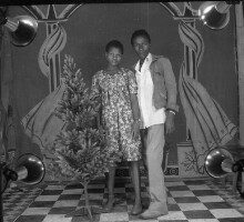 574. EAP054/1/30/574 Reference (shelfmark): EAP054/1/30/574 Title: Recreational photograph [c 1981] Scope & Content: Couple standing Format of original: 59mm x 59mm plastic negative Collection Area: Endangered Archives Programme Languages: Not applicable Date Range: c 1981 Extent: 1 TIFF image