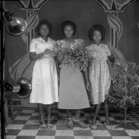 709. EAP054/1/30/709 Reference (shelfmark): EAP054/1/30/709 Title: Recreational photograph [c 1981] Scope & Content: 3 women standing Format of original: 59mm x 59mm plastic negative Collection Area: Endangered Archives Programme Languages: Not applicable Date Range: c 1981 Extent: 1 TIFF image