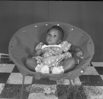 116. EAP054/1/39/116 Reference (shelfmark): EAP054/1/39/116 Title: Recreational photograph [c 1984] Scope & Content: Baby in an armchair Format of original: 57mm x 59mm plastic negative Collection Area: Endangered Archives Programme Languages: Not applicable Date Range: c 1984 Extent: 1 TIFF image