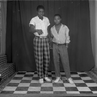 246. EAP054/1/39/246 Reference (shelfmark): EAP054/1/39/246 Title: Recreational photograph [c 1984] Scope & Content: 2 boys standing. Format of original: 59mm x 59mm plastic negative Collection Area: Endangered Archives Programme Languages: Not applicable Date Range: c 1984 Extent: 1 TIFF image