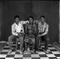 92. EAP054/1/39/92 Reference (shelfmark): EAP054/1/39/92 Title: Recreational photograph [c 1984] Scope & Content: Woman sitting between 2 men Format of original: 58mm x 59mm plastic negative Collection Area: Endangered Archives Programme Languages: Not applicable Date Range: c 1984 Extent: 1 TIFF image
