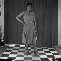 144. EAP054/1/39/144 Reference (shelfmark): EAP054/1/39/144 Title: Recreational photograph [c 1984] Scope & Content: Woman standing with right hand on hip Format of original: 59mm x 59mm plastic negative Collection Area: Endangered Archives Programme Languages: Not applicable Date Range: c 1984 Extent: 1 TIFF image