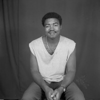 183. EAP054/1/39/183 Reference (shelfmark): EAP054/1/39/183 Title: Recreational photograph [c 1984] Scope & Content: Man standing, hand in pocket Format of original: 59mm x 59mm plastic negative Collection Area: Endangered Archives Programme Languages: Not applicable Date Range: c 1984 Extent: 1 TIFF image