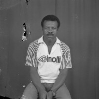 40. EAP054/1/44/40 Reference (shelfmark): EAP054/1/44/40 Title: Recreational photograph [c 1981 - 1982] Scope & Content: Man from Mbouda by his Suzuki motorbike which is propped up on 2 legs, his left hand on the saddle. Format of original: 59mm x 59mm plastic negative Collection Area: Endangered Archives Programme Languages: Not applicable Date Range: 1981-1982 Extent: 1 TIFF image