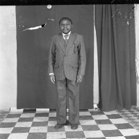 34. EAP054/1/44/34 Reference (shelfmark): EAP054/1/44/34 Title: Recreational photograph [c 1981 - 1982] Scope & Content: Man from Mbouda, standing, in a traditional hat, with a horse tail fly whisk in his right hand. Format of original: 59mm x 59mm plastic negative Collection Area: Endangered Archives Programme Languages: Not applicable Date Range: 1981-1982 Extent: 1 TIFF image