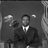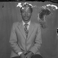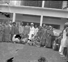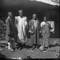A priest blessing a house in the presence of several people, but only one of these is visible, hands crossed. Format of original: 59mm x 59mm plastic negative