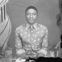 Couple standing, looking at each other, the man's hands in his trouser pockets, the woman's hands in the pockets of her dress ("caba"). Format of original: 59mm x 59mm plastic negative