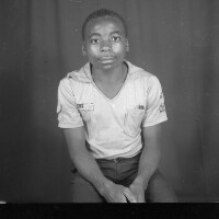96. EAP054/1/44/96 Reference (shelfmark): EAP054/1/44/96 Title: Recreational photograph [c 1981 - 1982] Scope & Content: Soldier from Mbouda in uniform with crossed arms. Format of original: 59mm x 59mm plastic negative Collection Area: Endangered Archives Programme Languages: Not applicable Date Range: 1981-1982 Extent: 1 TIFF image