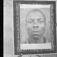 Wedding: six people at a marriage: 2 men (one bridegroom); 2 women (one bride); 2 children (a boy and a girl); flowers in front. Format of original: 59mm x 59mm plastic negative