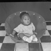 2 women from Mbouda, the older one sitting on a stool, handbag by her right foot, hands on her lap, the other standing with her right hand on the first womans shoulder. Format of original: 59mm x 59mm plastic negative