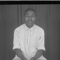 Couple standing, he holds glasses in right hand, left arm round his wife; he is from Babadjou (Kombou). Format of original: 59mm x 59mm plastic negative