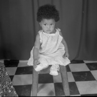 9 people: grandmother and little boy sitting on 2 stools, one little girl crouching, the rest standing. Format of original: 59mm x 59mm plastic negative