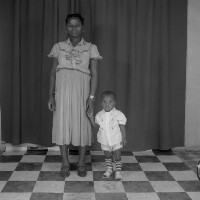 177. EAP054/1/46/177 Reference (shelfmark): EAP054/1/46/177 Title: Recreational photograph [c 1984 - 1985] Scope & Content: Woman standing, holding right hand of a little boy. Format of original: 59mm x 59mm plastic negative Collection Area: Endangered Archives Programme Languages: Not applicable Date Range: 1984-1985 Extent: 1 TIFF image