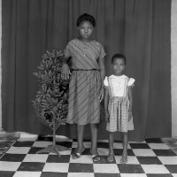 215. EAP054/1/46/215 Reference (shelfmark): EAP054/1/46/215 Title: Recreational photograph [c 1984 - 1985] Scope & Content: Girl from Mbouda standing, in a dress, plastic tree on her right. Format of original: 59mm x 59mm plastic negative Collection Area: Endangered Archives Programme Languages: Not applicable Date Range: 1984-1985 Extent: 1 TIFF image