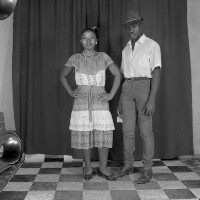 232. EAP054/1/46/232 Reference (shelfmark): EAP054/1/46/232 Title: Recreational photograph [c 1984 - 1985] Scope & Content: Two people: woman standing, hands on hips, and man holding a handkerchief in right hand, in wide brimmed dark hat. Format of original: 59mm x 59mm plastic negative Collection Area: Endangered Archives Programme Languages: Not applicable Date Range: 1984-1985 Extent: 1 TIFF image