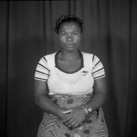 492. EAP054/1/46/492 Reference (shelfmark): EAP054/1/46/492 Title: Recreational photograph [c 1984 - 1985] Scope & Content: Women from Mbouda standing, traditional [woven] bag in left hand. Format of original: 59mm x 59mm plastic negative Collection Area: Endangered Archives Programme Languages: Not applicable Date Range: 1984-1985 Extent: 1 TIFF image