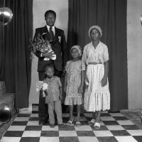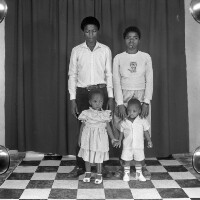 545. EAP054/1/46/545 Reference (shelfmark): EAP054/1/46/545 Title: Recreational photograph [c 1984 - 1985] Scope & Content: Man holding flowers in right hand with 3 children. Format of original: 59mm x 59mm plastic negative Collection Area: Endangered Archives Programme Languages: Not applicable Date Range: 1984-1985 Extent: 1 TIFF image