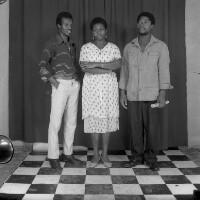 550. EAP054/1/46/550 Reference (shelfmark): EAP054/1/46/550 Title: Recreational photograph [c 1984 - 1985] Scope & Content: 2 men flanking a woman. Format of original: 59mm x 59mm plastic negative Collection Area: Endangered Archives Programme Languages: Not applicable Date Range: 1984-1985 Extent: 1 TIFF image