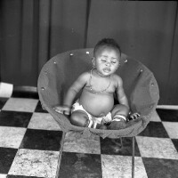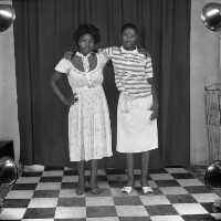 2 young women from Babete standing, arms around each others shoulders, in white, one with right hand on hip. Format of original: 59mm x 59mm plastic negative