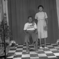 559. EAP054/1/47/559 Reference (shelfmark): EAP054/1/47/559 Title: Recreational photograph [c 1985 - 1986] Scope & Content: Girl and little girl standing, left hands raised. Format of original: 59mm x 59mm plastic negative Collection Area: Endangered Archives Programme Languages: Not applicable Date Range: 1985-1986 Extent: 1 TIFF image