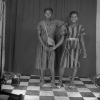 563. EAP054/1/47/563 Reference (shelfmark): EAP054/1/47/563 Title: Recreational photograph [c 1985 - 1986] Scope & Content: 2 young women holding right hands, left hand of one on the shoulder of the other. Format of original: 59mm x 59mm plastic negative Collection Area: Endangered Archives Programme Languages: Not applicable Date Range: 1985-1986 Extent: 1 TIFF image