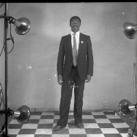 615. EAP054/1/47/615 Reference (shelfmark): EAP054/1/47/615 Title: Recreational photograph [c 1985 - 1986] Scope & Content: Man from Babadjou in dark suit and tie, standing. Format of original: 59mm x 59mm plastic negative Collection Area: Endangered Archives Programme Languages: Not applicable Date Range: 1985-1986 Extent: 1 TIFF image