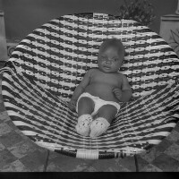36. EAP054/1/50/36 Reference (shelfmark): EAP054/1/50/36 Title: Recreational photograph [c 1980] Scope & Content: Baby lying in a black and white armchair. Format of original: 59mm x 59mm plastic negative Collection Area: Endangered Archives Programme Languages: Not applicable Date Range: c 1980 Extent: 1 TIFF image