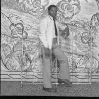 41. EAP054/1/89/41 Reference (shelfmark): EAP054/1/89/41 Title: Recreational photograph [c 1973] Scope & Content: Man from Bamendjinda standing, left arm and foot on iron grillwork behind. Format of original: 59mm x 59mm plastic negative Collection Area: Endangered Archives Programme Languages: Not applicable Date Range: c 1973 Extent: 1 TIFF image