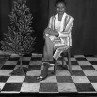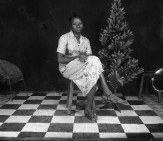 156. EAP054/1/94/156 Reference (shelfmark): EAP054/1/94/156 Title: Recreational photograph [c 1970-c 1995] Scope & Content: Woman from Batcham sitting on stool, hands on her knees, plastic tree on her right. Format of original: 59mm x 59mm plastic negative Collection Area: Endangered Archives Programme Languages: Not applicable Date Range: c 1970-c 1995 Extent: 1 TIFF image