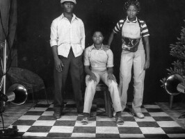 157. EAP054/1/94/157 Reference (shelfmark): EAP054/1/94/157 Title: Recreational photograph [c 1970-c 1995] Scope & Content: Girl sitting on stool, hands on thighs, boy on her right, girl on her left with her hand on the first girls shoulder. Format of original: 45mm x 59mm plastic negative Collection Area: Endangered Archives Programme Languages: Not applicable Date Range: c 1970-c 1995 Extent: 1 TIFF image