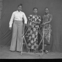 51. EAP054/1/94/51 Reference (shelfmark): EAP054/1/94/51 Title: Recreational photograph [c 1970-c 1995] Scope & Content: 3 women standing behind iron grillwork Format of original: 59mm x 59mm plastic negative Collection Area: Endangered Archives Programme Languages: Not applicable Date Range: c 1970-c 1995 Extent: 1 TIFF image