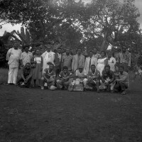 125. EAP054/1/99/125 Reference (shelfmark): EAP054/1/99/125 Title: Recreational photograph [c 1987] Scope & Content: Family group of 20 people, having won a trophy; trees behind. Format of original: 59mm x 59mm plastic negative Collection Area: Endangered Archives Programme Languages: Not applicable Date Range: c 1987 Extent: 1 TIFF image