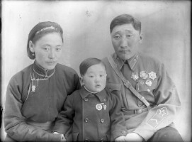 67. EAP264/1/8/1/67 Reference (shelfmark): EAP264/1/8/1/67 Title: Hero of Mongolia Gongor with his family [1940s] Collection Area: Endangered Archives Programme Languages: Not applicable Date Range: 1940s Extent: 1 TIFF image