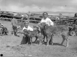 139. EAP264/1/8/6/139 Reference (shelfmark): EAP264/1/8/6/139 Title: Nomad children tending calves in their camp, Central Mongolia [1930s] Collection Area: Endangered Archives Programme Languages: Not applicable Date Range: 1930s Extent: 1 TIFF image