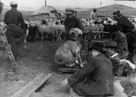 66. EAP264/1/8/6/66 Reference (shelfmark): EAP264/1/8/6/66 Title: A herd of sheep by a herdsman’s camp, Central Mongolia [1940s] Collection Area: Endangered Archives Programme Languages: Not applicable Date Range: 1940s Extent: 1 TIFF image