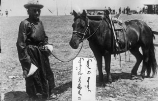84. EAP264/1/8/6/84 Reference (shelfmark): EAP264/1/8/6/84 Title: A herdsman with a new- breed horse [1930s] Collection Area: Endangered Archives Programme Languages: Not applicable Date Range: 1930s Extent: 1 TIFF image