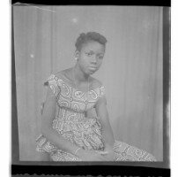 101. EAP449/2/10/101 Reference (shelfmark): EAP449/2/10/101 Title: A woman wearing a dress sitting in profile in the studio. Collection Area: Endangered Archives Programme Languages: Not applicable Date Range: 2nd half od the 20th century Extent: 1 TIFF image