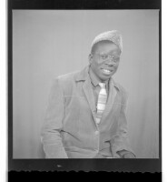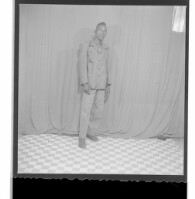 111. EAP449/2/10/111 Reference (shelfmark): EAP449/2/10/111 Title: A man wearing a shirt and pants standing in profile in the studio. Collection Area: Endangered Archives Programme Languages: Not applicable Date Range: 2nd half od the 20th century Extent: 1 TIFF image