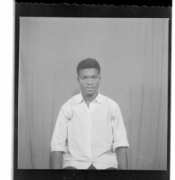 112. EAP449/2/10/112 Reference (shelfmark): EAP449/2/10/112 Title: A man wearing a shirt sitting face-forward in the studio. Collection Area: Endangered Archives Programme Languages: Not applicable Date Range: 2nd half od the 20th century Extent: 1 TIFF image