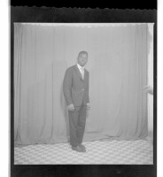 120. EAP449/2/10/120 Reference (shelfmark): EAP449/2/10/120 Title: A man wearing a suit standing face-forward in the studio. Collection Area: Endangered Archives Programme Languages: Not applicable Date Range: 2nd half od the 20th century Extent: 1 TIFF image