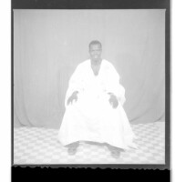 30. EAP449/2/10/30 Reference (shelfmark): EAP449/2/10/30 Title: A man wearing a boubou sitting face-forward in the studio. Collection Area: Endangered Archives Programme Languages: Not applicable Date Range: 2nd half od the 20th century Extent: 1 TIFF image