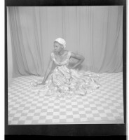 142. EAP449/2/12/142 Reference (shelfmark): EAP449/2/12/142 Title: A woman in a dress sitting in profile in the studio. Collection Area: Endangered Archives Programme Languages: Not applicable Date Range: 2nd half od the 20th century Extent: 1 TIFF image