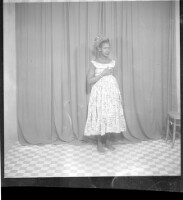 203. EAP449/2/12/203 Reference (shelfmark): EAP449/2/12/203 Title: A woman in a dress, headscarf, and necklace standing in profile in the studio. Collection Area: Endangered Archives Programme Languages: Not applicable Date Range: 2nd half od the 20th century Extent: 1 TIFF image