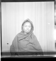 204. EAP449/2/12/204 Reference (shelfmark): EAP449/2/12/204 Title: A woman in a large headscarf sitting facing forward in the studio. Collection Area: Endangered Archives Programme Languages: Not applicable Date Range: 2nd half od the 20th century Extent: 1 TIFF image