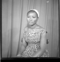 207. EAP449/2/12/207 Reference (shelfmark): EAP449/2/12/207 Title: A woman in a dress, headscarf, and necklace sitting in the studio. Collection Area: Endangered Archives Programme Languages: Not applicable Date Range: 2nd half od the 20th century Extent: 1 TIFF image