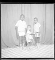 210. EAP449/2/12/210 Reference (shelfmark): EAP449/2/12/210 Title: Three boys in shorts and shirts standing in the studio. Collection Area: Endangered Archives Programme Languages: Not applicable Date Range: 2nd half od the 20th century Extent: 1 TIFF image