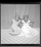 262. EAP449/2/12/262 Reference (shelfmark): EAP449/2/12/262 Title: Two girls in dresses and headscarves, one sitting facing forward and the other in profile in the studio. Collection Area: Endangered Archives Programme Languages: Not applicable Date Range: 2nd half od the 20th century Extent: 1 TIFF image