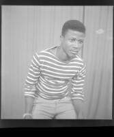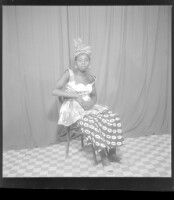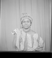 270. EAP449/2/12/270 Reference (shelfmark): EAP449/2/12/270 Title: A woman in a short dress and pagne standing facing forward in the studio. Collection Area: Endangered Archives Programme Languages: Not applicable Date Range: 2nd half od the 20th century Extent: 1 TIFF image